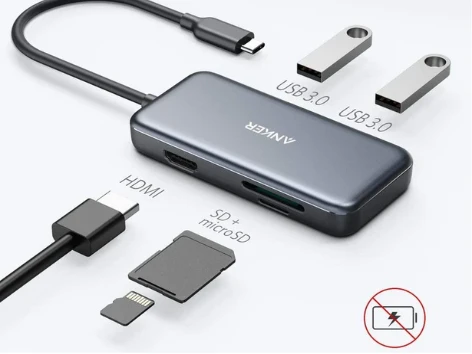 Expand one USB-C port into HDMI, USB, SD card, and Ethernet connections. Ideal for modern laptops.